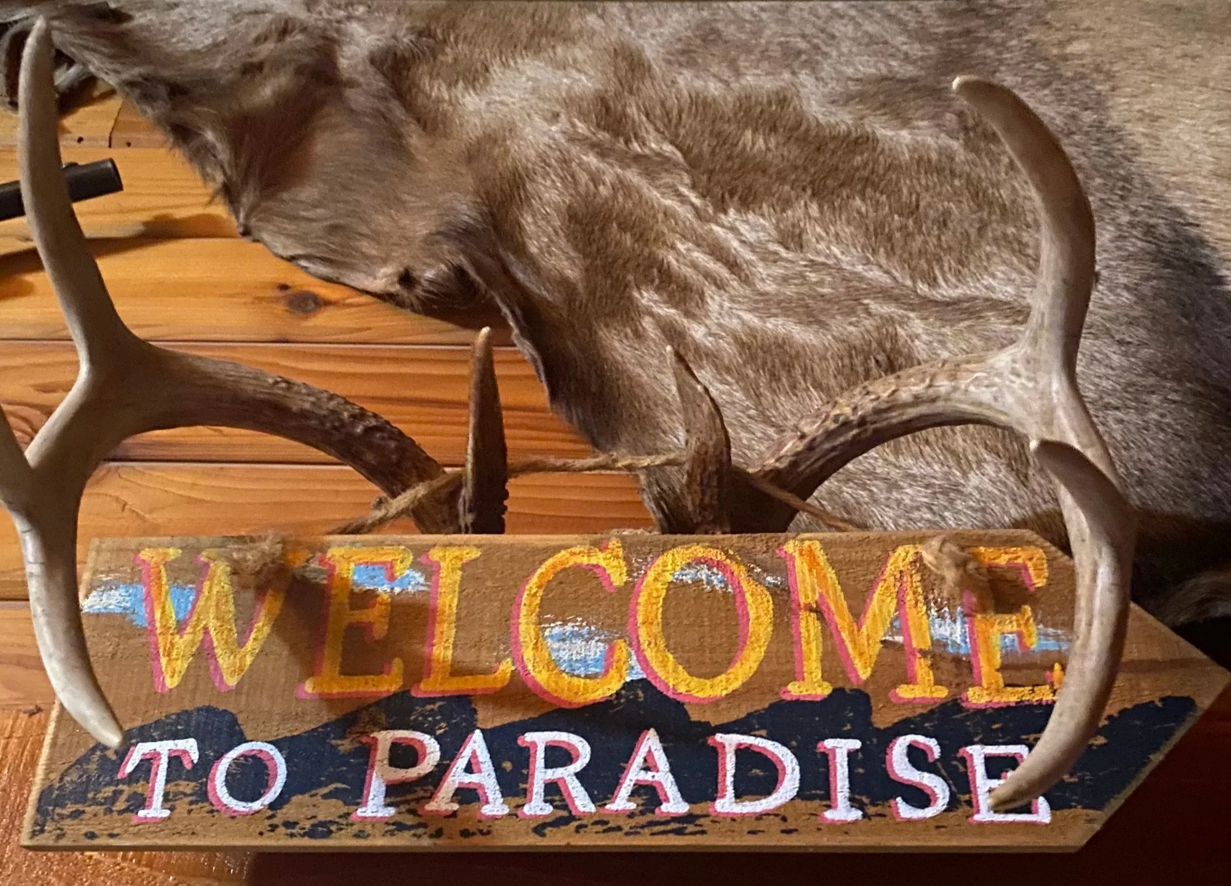 The couple now care for the 500-acre property together with its meadows and ponds - one of which, Lake Loraine, is Chris’ favorite spot and where they were married. A sign hangs above the door leading to the deck overlooking a meadow where the elk stand in the early morning mist. It reads, “Welcome to Paradise.”